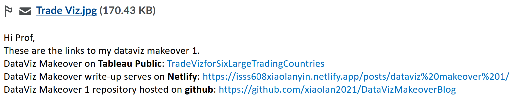There are two dataviz makeover exercises that are due throughout the