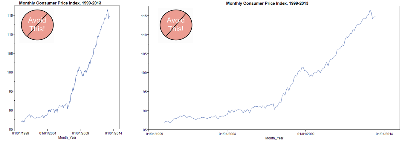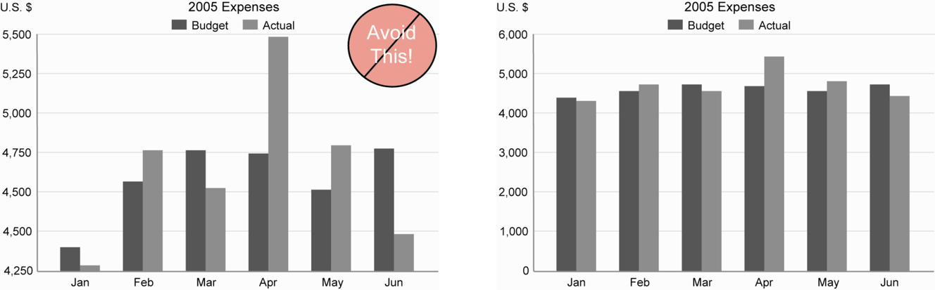 Singapore Management University ### 2019-04-28 (updated: 2022-04-21) --- # What will you learn from this lesson? .vlarge[ - Data visualisation design process - The Devil is in the data - Human perception and information processing - Components of a graph - Principles and practical guides for data visualisation design - Data visualisation critics framework ] ??? In this lesson, I am going to share with you the basic principles and best practices of Data Visualisation Design. The discussion consists of five sections. First, I will provide an overview of data visualisation design process. Next, by using appropriate examples, I will share with you the importance of data selection and preparation in building enlightening graphs. In section three, the principles of visual perception will be introduce. In section four, the practical guides of data visualisation design will be discussed. Lastly, a framework for evaluating and criticising data visualisation design will be introduced. --- ## Building Block of Visual Analytics .center[  ] ??? This slide shows the building block of visual analytics. Today, we will focus our attention on the lower left corner of the building block, namely Visual Perception. --- # Data visualisation design process .vlarge[ - Start with a clear message - Select the right data - Use the right visualisations - Express and explain - Review and seek feedback from experts and casual readers ] ??? In general, a data visualisation design process consists of five major steps. --- # DataViz design process: Start with a clear message .center[  ] ??? In data visualisation design, it is important to be clear and explicit about what you want to achieve. Is it to explore some data, to convey an inferential analysis, to deliver a message, convince an audience, or support a decision? It may be a mixture of these—for example, even seemingly simple exploratory plots should serve some (perhaps implicit) decision (e.g., on how to explore further). Every graph, and, more generally, every communication, must be tailored to its specific purpose. --- # The Devil is in the Data  ??? Clean and tidy data are needed to build truthful data visualisation. But beside clean and tidy data, there are at least two considerations related to data require our attention. --- ## Numbers Worth Knowing .vlarge[ + Not all numerical data are continuous!] .center[  ] ??? First, it is important to note that not all numerical data are continuous. There are two types of numerical data. They are discrete and continuous. Discrete data can only assume specific values that you cannot subdivide. Typically, you count discrete values, and the results are in frequency count or in per cent . For example, display size should be classified as discrete (i.e. nominal or ordinal scales) instead of continuous., a mean of 15.81 in monitor is no meaning. Continuous data can assume any numeric value and can be meaningfully split into smaller parts. Consequently, they have valid fractional and decimal values. In fact, continuous variables have an infinite number of potential values between any two points. Generally, you measure them using a scale. --- ## Visualising the Right Data .vlarge[ + There are more than one way to present the data. ] .center[  ] ??? Secondly, there are more than one way to present the data. It is not unusual by presenting derived data reveal more aha surprises than the raw data. --- ## Visualising the Right Data .large[ + Derived values reveal more interesting patterns than absolute values. ] .pull-left[  ] -- .pull-right[  ] ??? The data visualisation on the left is a dual y-axis bar graph. The y-axis on the left shows revenue and the y-axis on right shows customers. From the graph, you can see how both the monthly revenue and number of customers are growing for this company. The data visualisation on the right shows the differences between the month-to-month % change of revenue and customers. By showing the data in percent change, the data visualisation allows us to discover that the month-to-month customers and revenue growth rate are reducing in the financial year. --- ## Visualising the Right Data .large[ + Derived values reveal more interesting patterns than absolute values. ] .center[  ] ??? By deriving revenue per customer and plot them as a line graph, the data visualisation allows us to tell a more compelling data story. In the figure, we can see that revenue per customer has decreased significantly during the year, even though the monthly revenue has risen steadily. The important take away from this case study is that select the right data to prepare the data visualisation and be mindful that the raw data might not always be the right choice. --- ## Graphical Integrity: Show Me the Truth .center[  .small[ Source: [Department of Statistics](https://www.singstat.gov.sg/modules/infographics/singapore-international-trade) ]] ??? Let us take a good look at the data visualisation on the slide. Can you spot any graphical integrity issue? Yes, the issue of inconsistent data aggregation. On the figure, the major trading partners are at the country level except EU. --- ## Graphical Integrity: Show Me the Truth .large[ - Snapshot can be misleading!] .pull-left[  ] -- .pull-right[  ] .small[ Source: Cairo, Alberto (2019) **How Charts Lie**, W.W. Norton & Company, USA. pg 168. ] ??? Donald Trump liked to claim that the job market was a "disaster" before he was sworn in but recovered right after, and he used charts that cropped the horizontal axis in a convenient place. But if we go back in time and mark the point when Trump became president, we'll see that there's no remarkable change in the trajectory and slope of the line. Jobs began recovering in 2010. --- ## Graphical Integrity: Show Me the Truth .vlarge[ - Do not miss-out what had happened in between.] .pull-left[  ] -- .pull-right[  ] --- # Human Perception and Information Processing .center[  ] --- ## Pre-attentive Processing .vlarge[ - A limited set of